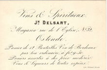 Formaat : 7,5 x 11,6 mm. - Vins & Spiritueux Jh.Delsart. Magasin rue de l'Eglise NΒ° 32. Panier de 12 Bouteilles Vin de Bordeaux pur bon ordinaire Γ Frs 9-50. Panier assortis Γ des prix modΓ©rΓ©s Vin & Liqueurs de toutes espΓ¨ces.Β