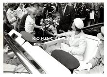 Foto : 12 x 18 cm. Kinderen overhandigen de koningin een bloementuil.