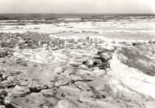Formaat : 6 x 10 cm. - Vaart uit een bevroren havengeul
