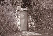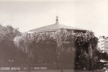 3 foto's, formaat : 8,5 x 12,5 cm. - Dienstingang tot de Trinkhall (boven). De muziekkiosk (onder)