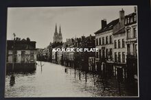 Groentenmarkt en de Kaaistraat met links op de hoek de porseleinwinkel van L. Breemersch.Β