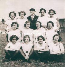 Formaat 20 x 20 cm. - : Staand: links Bertha Falise, rechts Gilberte Falise. Middelste rij: rechts Fernande Falise.