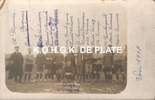 Formaat : 9 x 22 cm.- Staand v.l.n.r.: De Bruyne, Lenaers, Devriese, Hubrechsen, Van Eycken, Deghilage, Boussy, Susilovic, Pintelon, D'Hulster, Fontaine. Zittend v.l.n.r.: J. Neirynck, V.D. Brouck, De Weert, Decorte, De Buf