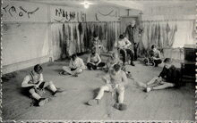 Nels/Thill. - Echte foto. Leerlingen leren netten breien en/of herstellen