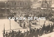 Formaat : 6 x 8 cm. - Blijde intrede van het 23e Linieregiment op het Wapenplein