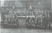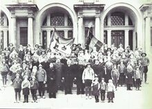 Formaat : 29 x 41 cm. Groepsfoto op de trappen van het Thermae Palace.