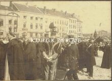 2 foto's formaat : 8,5 x 13,5 cm. -Β (1) Aankomst van de processie aan de Sint Petrus en Pauluskerk en (2) Mis opgedragen in de Sint Petrus en Pauluskerk. - Map 006 C07a-b