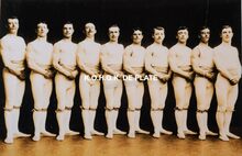 Van links naar rechts:Β Louis Coppejans ;Β Hendrik BoddaertΒ ;Β Marinus ClaassensΒ ;Β Richard PanesiΒ ;Β Edmond Lombaert ;Β Medard VerbarreΒ ;Β Emiel De Visscher ;Β Emiel Bakker ;Β Provost ;Β Breemeersch