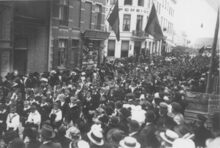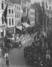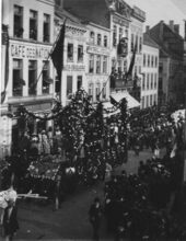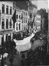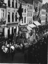 Formaat : 10 x 15 cm. - De processie in de Jozef II-straat. Links, de hoek met de Kapellestraat.