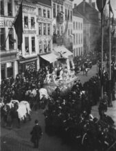 12 foto's formaat : 10 x 8 cm. - Met 12 negatieven in omslag en 12 vergrotingen, formaat : 29 x 21 cm. - Foto's : (3) Praalwagen van de vereniging"Β De Oude Wasschers" met als thema "L'Union Internationale de PΓͺcheurs" ; (6) Praalwagen van het inrichtend comite ; (11) Praalwagen van de vereniging "Union Ostendaise" met als thema "Une SoirΓ©e sous Louis XV" ; (12) Praalwagen van de vereniging "La Concordia" met als thema "Ostende centre d'art et de rΓ©jouissance". De stoet op het Wapenplein. - Verdere literatuur in : L'Echo d'Ostende, 02/04/1907, p.1-3.Β - Map 006 A-132a-d en Map 006 A-133a-h