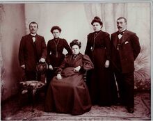 Mevrouw Weduwe Bauts Baer met haar 2 dochters en schoonzoons rond 1900