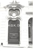 Formaat : 12 x 8 cm. De ingangsdeur met omlijsting is beschermd als monument
