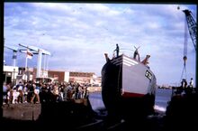 Dia's van de bouw, de te waterlating en de doop van de Fighter 0.124.