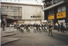 Formaat : 10 x 15 cm. - We zien het showkorps van Willen is Kunnen in de Leopold II-laan. - Map 006 A-111a