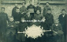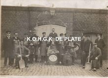 Zwart/wit oto Antony zonderdatum. - Formaat : 20 x 30 cm. - Groepsfoto "SociΓ©tΓ© propagandiste Jean JaurΓ©s" met vaandel (waarop jaartal 1925). Foto genomen op de hoek van de Nieuwpoortsesteenweg en de FranΓ§ois Musinstraat