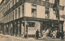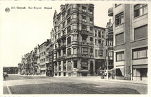Gevelopschriften : Grand hotel d'Ostende. Lift. MΓ¨me maison & cafe de Paris. Bruxelles. Noppeney. Restaurant. Grand hotel. Op de hoek met de Hertstraat HΓ΄tel du Littoral.Β