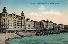 V.l.n.r. vanaf de Ijzerstraat : HΓ΄tel Continental, HΓ΄tel de l'OcΓ©an, HΓ΄tel de la Plage, HΓ΄tel Beau Rivage, Splendid HΓ΄tel