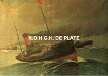 Een oude loodsboot uit de tijd toen er nog met zeilen gevaren werd. De P op de zeilen wijst op Pilot (loods). De loodsen van onze kusthavens en vooral van de Scheldemonding waren zeer dikwijls Oostendenaars die Vlissingen als tweede vaderstad hadden (Omer Vilain)