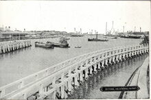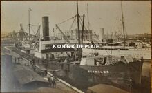 Het vrachtschip "Reynolds" aangemeerd in het Vlotdok nabij Hangaar N° 1.