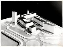 Van Mieghem A., Oostende. - Luchtfoto van de omgeving van de Sint Petrus en Pauluskerk met de "Peperbusse", de toren van de door brand vernielde Sint Pieterskerk. De handelsdokken, nu de Mercator jachthaven, een gedeelte van de wijk Hazegras en de Leopold III-laan. Links het Zeestation. Map 041B/74
