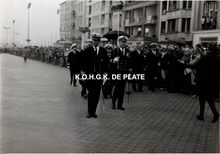 Herbegraving van 6 Oostendse helden op 6 augustus 1921 : Prosper Dosveld, Georges Ryckewaert, Engelbert Vermaete, Frans Dewulf, Jaak Luca en Pieter Bastien. Schepen Baels was aanwezig op de plechtigheid.