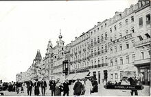 Formaat : 13 x 18 cm. - Het eerste appartementsgebouw te Oostende. Helemaal bovenaan in de gevel EAU MINERALE D'OSTENDE / SOURCE DU PARC / ALCALINE SODIQUE LEGERE