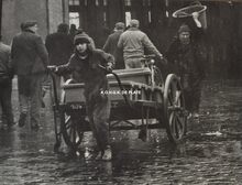 Foto Asaert-Pierloot:puinruimen per paardekarren in de afgebran-
