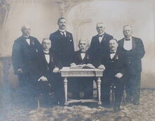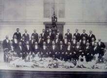 Foto op kartonsupport. Formaat : 22 x 28 cm. Support : 35,5 x 41,5 cm. - 1921. Koninklijke Tooneelmaatschappij Hoop in de Toekomst aan hare jubilarissen