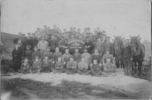 Formaat : 18 x 24 cm. - Met vaandel van de afdeling Oostende. De vierde man van links met bolhoed en bril, burgemeester Henri Serruys (?), de eerste voorzitter van de vereniging afdeling Oostende. Het vaandel is in het bezit van de heemkring De Plate. - Map 006 A-54