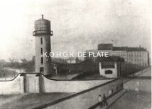 Afdruk van schilderij. - Formaat : 12 x 16 cm. - Afbeelding van de eerste watertoren te Oostende, gebouwd in 1871-1872, ongeveer gelegen op de hoek van de huidige Hendrik Serruyslaan en de Karel Janssenslaan, in het Leopoldpark.