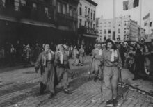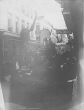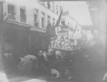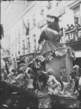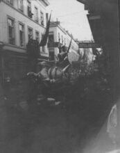 Zwart/wit foto Antony nr 220231-5. Formaat : 24 x 19 cm. - Detail van een carnavalgroep op de Vindicitivelaan nabij het "Panorama van den Ijzer".
