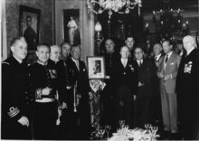 Formaat : 13 x 18 cm. - Viering van "Saint Rainier", of De Nationale feestdag van Monaco op 19 november op het consulaat van Monaco, of De woning van Marie-Jozef Porta, consul van Monaco, in de Van Iseghemlaan. We herkennen van links naar rechts, Kapitein ter Zee, Jules Delforge, schepen Frans Van Caillie, deken René Butaye, de schepenen Kamiel Dehouck, Emiel Vroome, Maurice Quaghebeur, consul van Monaco Marie-Jozef Porta, schepen Jan Piers, Henri Smissaert, Robert Elleboudt uitgever van de Zeewacht, Guy Descamps en stadssecretaris Michel Surmont