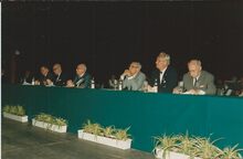 Formaat : 13 x 18 cm. - Plechtigheid met schepen Emiel Vroome in het dienstdoend stadhuis (Gerechtshof, Canadaplein). - Map 006 A-85a