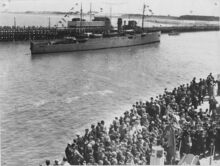 Zwart/wit foto Antony nr (?). Formaat : 13 x 17 cm. - De deelnemers aan het driedaagse congres ontschepen te Calais. Zij kwamen met de pakketboot "Stad Antwerpen". Verdere literatuur in : Le Carillon, 22/06/1929, p.1-2. - Map 006 A-88a-Antony