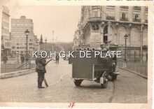 Formaat : 8 x 12 cm. - Brandweeroefening in de Leopoldlaan tijdens het begin van de Tweede Wereldoorlog. Op de hoek Hotel Imperial, Van Iseghemlaan 70-72.