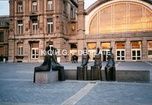 Formaat : 10 x 15 cm. - De beeldengroep "De Vissersvrouwen" van August Michiels op het Stationsplein