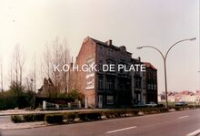 "Op de voorgrond het gebouw van de "Automobielinspectie". Dit gebouw werd opgetrokken in opdracht van de zoon van architect G. Vandamme, Max Vandamme. Uitbater sinds de Tweede Wereldoorlog van alle keuringsstations in West-Vlaanderen. Het bedrijf is nog altijd in handen van de familie" (Jan Nuytten)