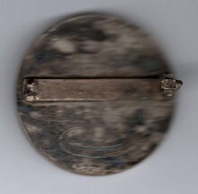 Op de keerzijde : vier engelen die naar links vliegen ; de eerste heeft een schaal met de eeuwige vlam in haar beide handen en boven haar hoofd staat, INGENIVM ; de tweede houdt een blad in haar linkerhand terwijl haar rechterhand op haar voorhoofd rust en boven haar staat, INTELLECTVS ; de derde draagt een beeldje en boven haar staat, ARS ; de laatste heeft een tandwiel en boven haar staat, INDVSTRIA ; onder hen een panorama van de stad Brussel met links op een banderol rond de toren van het stadhuis, BRUSSEL / BRUXELLES. Onderaan op de afsnede verdiept, in het midden, I935, links ervan ; EXPOSITION UNIVERS LE / ET / INTERNATIONALE ; rechts, ALGEMEENE WERELD / = TENTOONSTELLING. Aan de voeten van de vierde engel de signatuur BONNETAIN