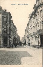 Ostende - Rue de la Chapelle. - De Kapellestraat richting het Wapenplein. Vooraan, de hoek met de Jozef II-straat. Rechts, gedeelte van Hotel Pension Britannique.