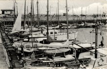 Albert, N° 160. Real-Photoplastifix A. Dohmen, Bruxelles. - Ostende - Embarcadère du Yacht Club. OOostende - Aanlegkade van de Yachtclub. Ostend - Landing-stage of the Yacht Club. - Jachten en zeiljachten gemeerd in het noordelijk deel van het dok nabij de "Royal North Sea Yacht Club". De kaai die de verbinding is tussen de Visserskaai en het clubhuis heet sedert 1971, Montgomerykaai.