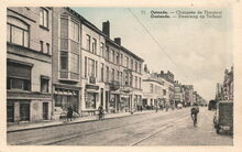 Gegy, NΒ° 11. - Ostende - ChaussΓ©e de Thourout. Oostende - Steenweg op Torhout. - De Torhoutsesteenweg gezien vanaf het kruispunt "Petit Paris", met links op de hoek met de Grensstraat, de moto- en rijwielenhandel van R. Degryse en Zoon, Torghoutsesteenweg 100