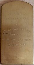 Het erkentenisplaket is langwerpig, aan de bovenzijde afgerond, en is als volgt ingegraveerd: