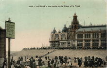 Albert, NΒ° 98. Phototypie A. Dohmen, Bruxelles. Ostende - Le Kursaal, cΓ΄tΓ© latΓ©ral. Ostend - The Kursaal. - De westgevel van de derde kursaal langs de Zeedijk. Dit plekje wordt ook "Petit Nice" genoemd, daar het beschutting biedt tegen de soms gure noord-oosten zeewind.