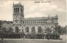G. Bots-Reyns, Ostende. - Ostende - HΓ΄tel des Postes. - Het postgebouw langs de Hendrik Serruyslaan gezien vanuit het Leopoldpark. Links, de Wittenonnenstraat