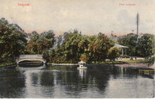 Grandes Galeries Belges, Ostende, NΒ°3118a. - Ostende - Parc Leopold. - Bijgekleurde kaart. - De vijver van het Leopoldpark, met links, de stenen brug en rechts, een gedeelte van de muziekkiosk