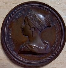 Op de voorzijde : Centraal het borstbeeld van koningin Victoria van het Verenigd Koninkrijk naar links gericht, ze draagt een kroon en oorbellen, rondom links VICTORIA REINE, rondom rechts DβANGELETERRE, Onder de buste gesigneerd VERACHTER DIR. HART FECIT
