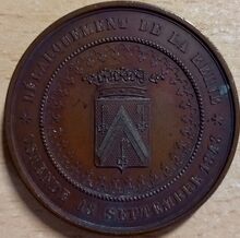 De penning is rond met geprofileerde rand, en is als volgt ingegraveerd: