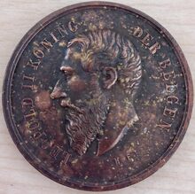 Op de voorzijde : Centraal het hoofd van koning Leopold II naar links gericht, rondom links LEOPOLD II KONING, rondom rechts DER BELGEN, onderaan gesigneerd H.F.T