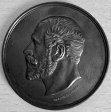 De gedenkpenning is rond met gladde geprofileerde rand, daarnaast een parelrand en is als volgt ingegraveerd