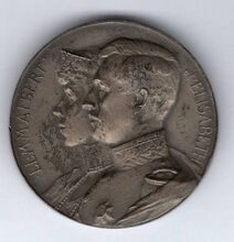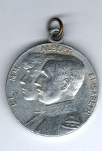 Op de voorzijde : De gekoppelde borstbeelden van koningin Elisabeth met diadeem en koning Albert I in uniform naar links gericht, rondom links LL. MM. ALBERT, rondom rechts ET ELISABETH, onderaan rechts gesigneerd G. DEVREESE